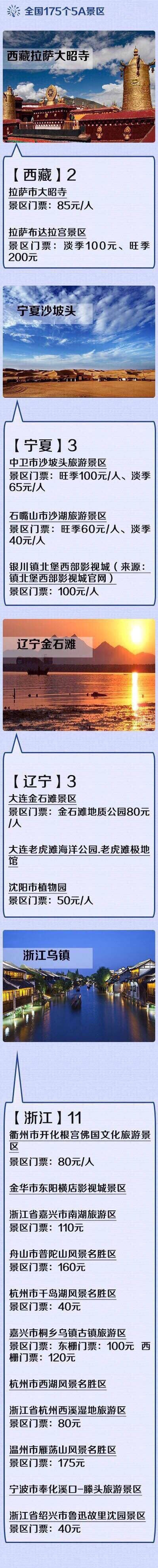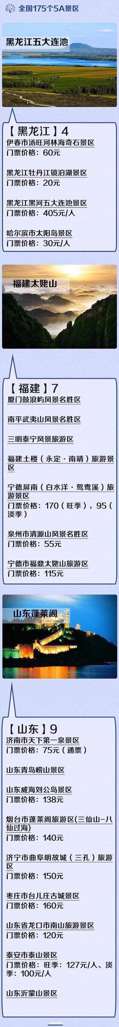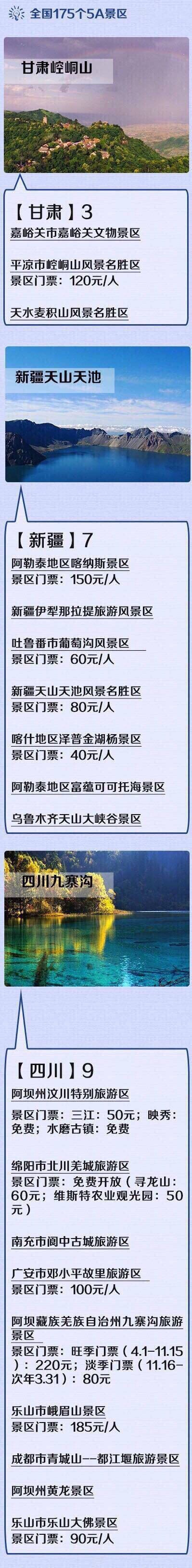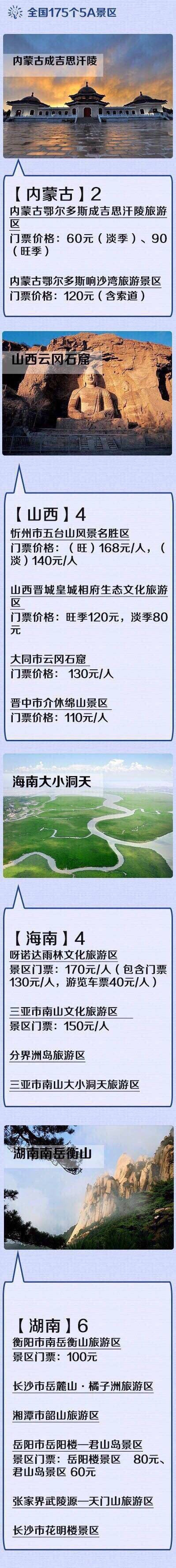 全国最新175个5A景区全名单